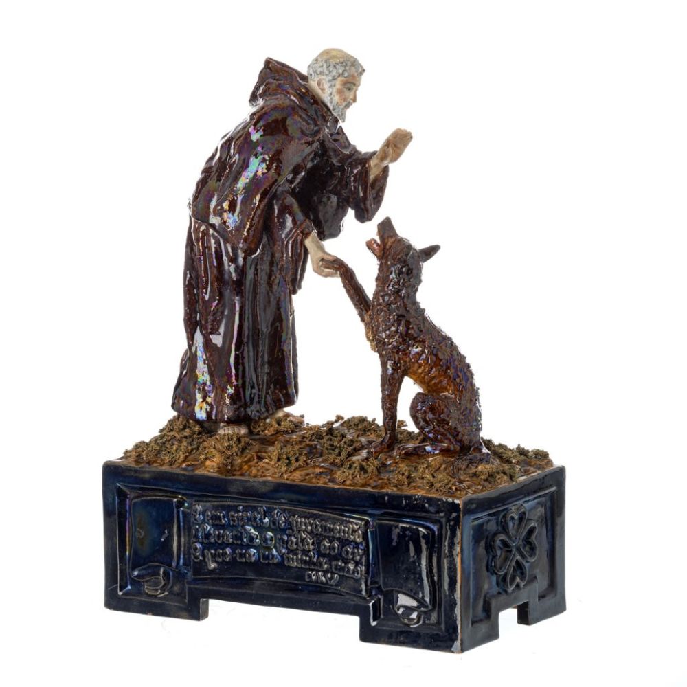 decoração polícroma vidrada e desvidrada, representando São Francisco